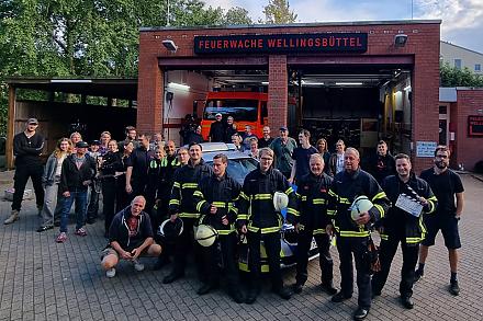 Zwar bleibt der genaue Handlungsverlauf der Folge noch ein Geheimnis, doch so viel können wir verraten: Es wird spannender und actionreicher, als man es sich eigentlich in einer Feuerwache wünschen würde. ![]() Jens für die Tonaufnahme bei der Grillparty Zu sehen ist die Folge 'Nichts mehr wie es war' am 2. März 2026 um 18:50 Uhr im Ersten oder in der ARD Mediathek ![]() Tim, Wehrführer der FF Wellingsbüttel, in einer Szene mit Schauspieler Mathis Reinhardt ![]() Gruppenfoto des gesamten Filmteams vor der Feuerwache Wellingsbüttel |